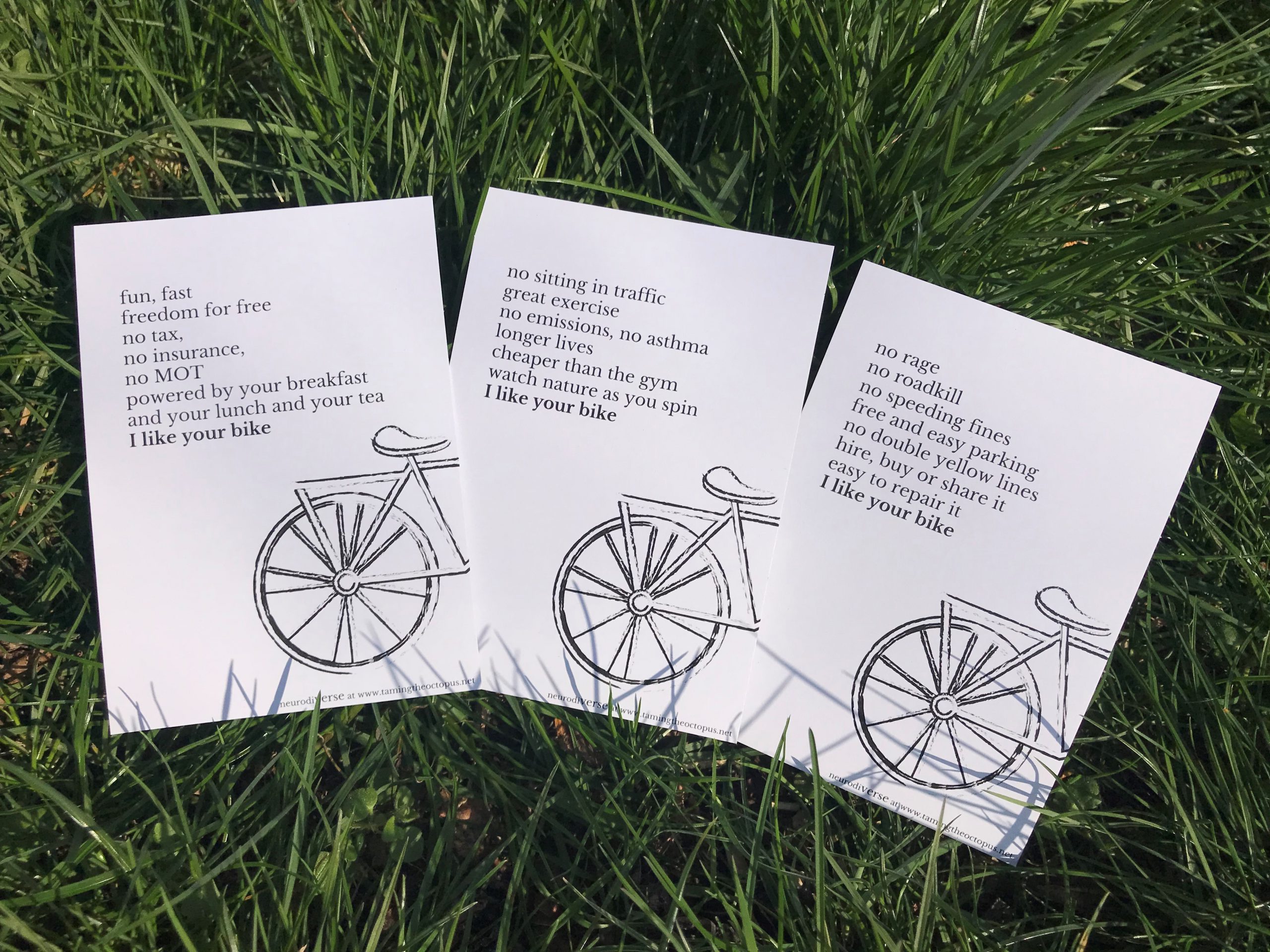 9 postcards – 3 of each bike poem